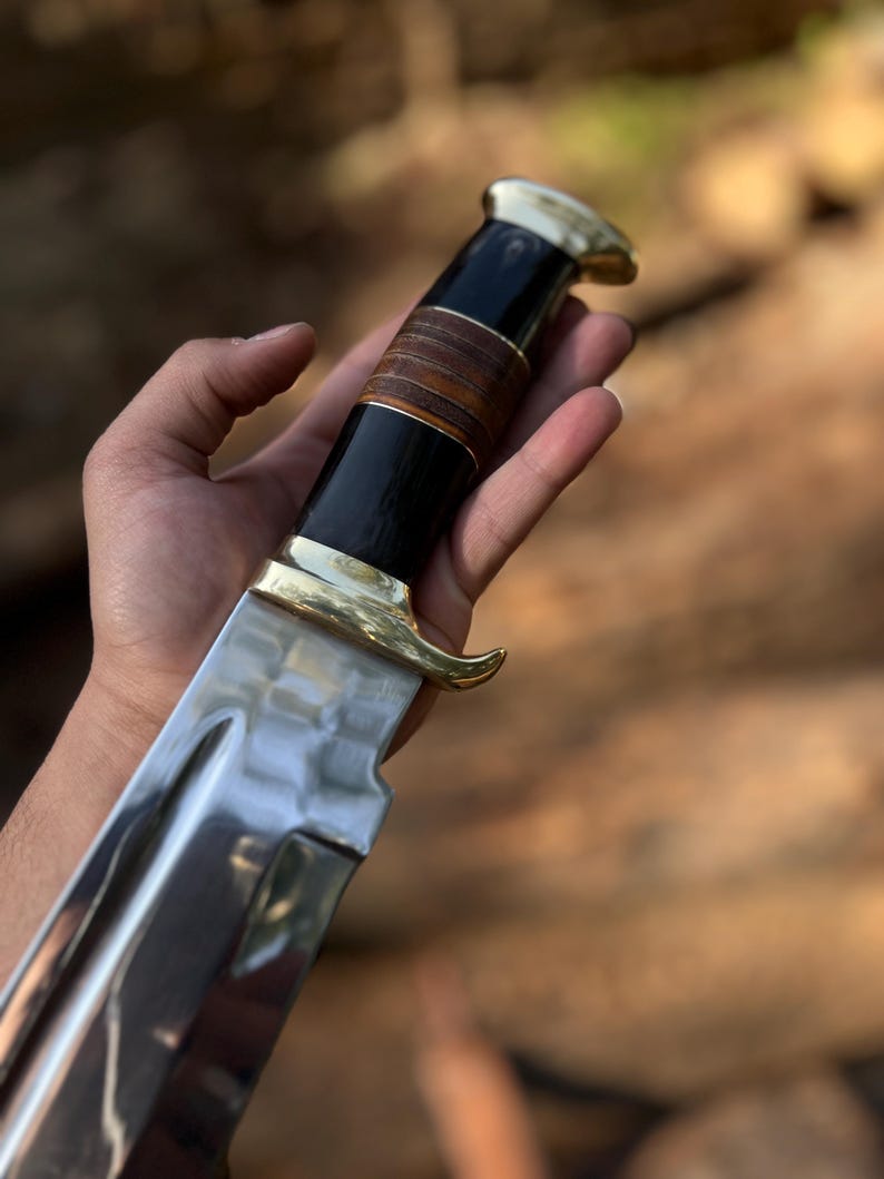 Rankų darbo D2 plieno Bowie peilis su makštimi